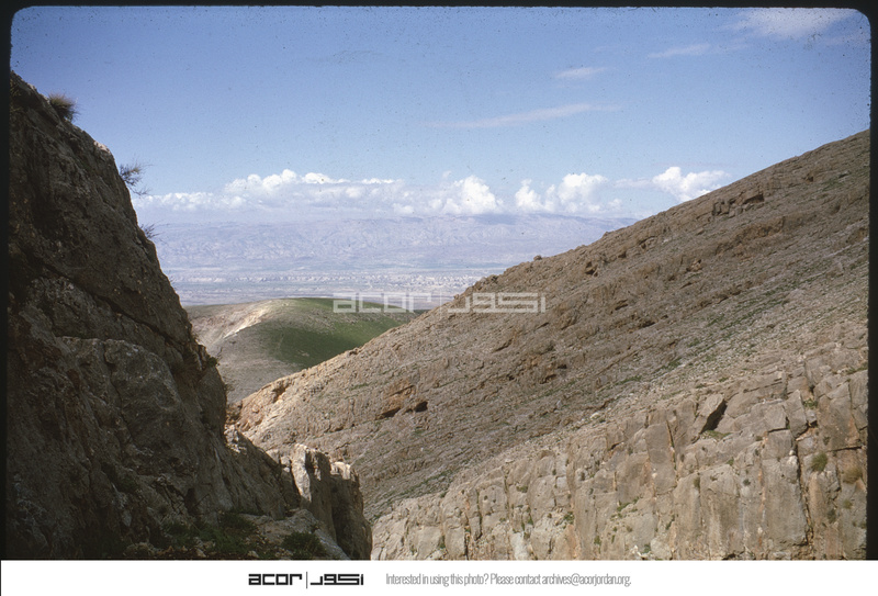 Looking E down W. Daliyeh to Jordan valley & hills of Ammon