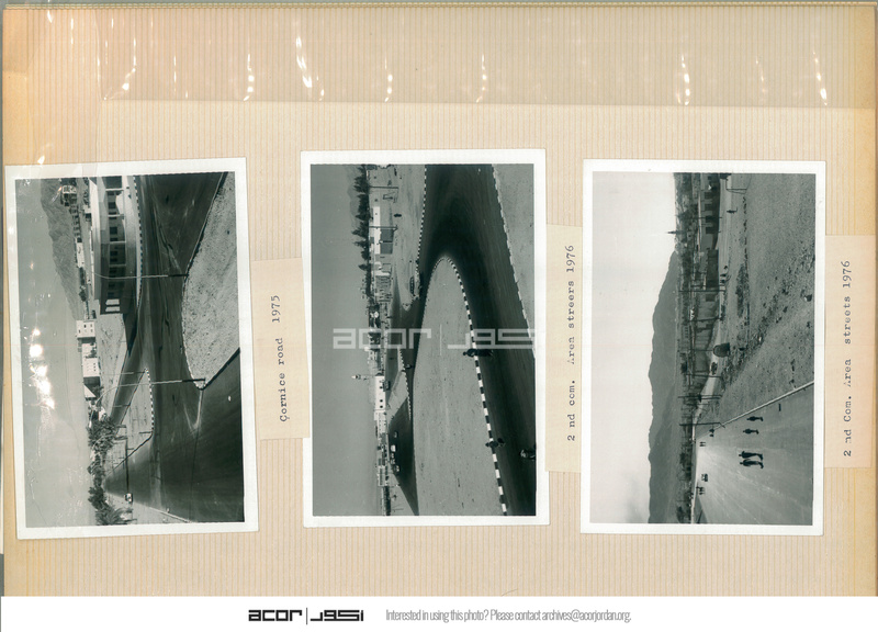 Cornice road 1975, 2nd com. area [streets] 1976, 2nd com. area streets 1976, Aqaba photo album from the early 1980s. Possibly created by Don Whitcomb or S. Thomas Parker.