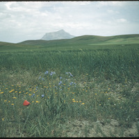 Flowers with mountains around Hamadan in background