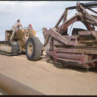 Heavy equipment constructing pipeline on way to Thaj