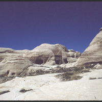 - View of High Place of Sacrifice altars on top of the Jebel Madbah in Petra