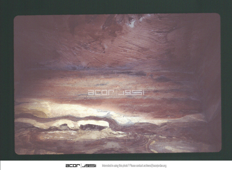 - Colorful sandstone rock striations from interior in the Al Khazneh (Treasury) at Petra