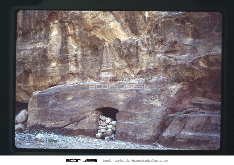 - Obelisk carved in relief on a rock in Petra