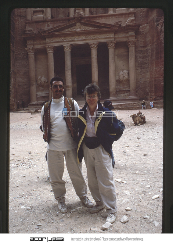- Valerie Hane and tour guide from front of the Al Khazneh (Treasury) in Petra