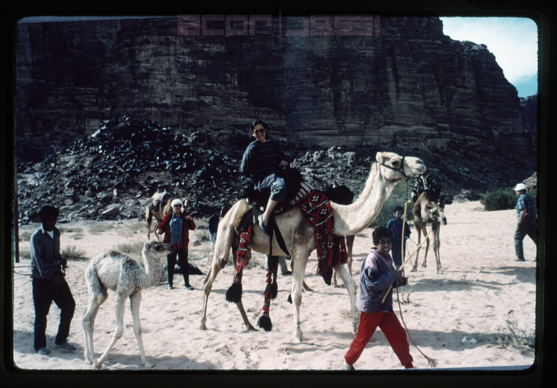 - Barbara A. Porter on camel being led by a bedouin boy in Wadi Rum