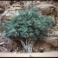 - Two camels under a tree in Wadi Rum