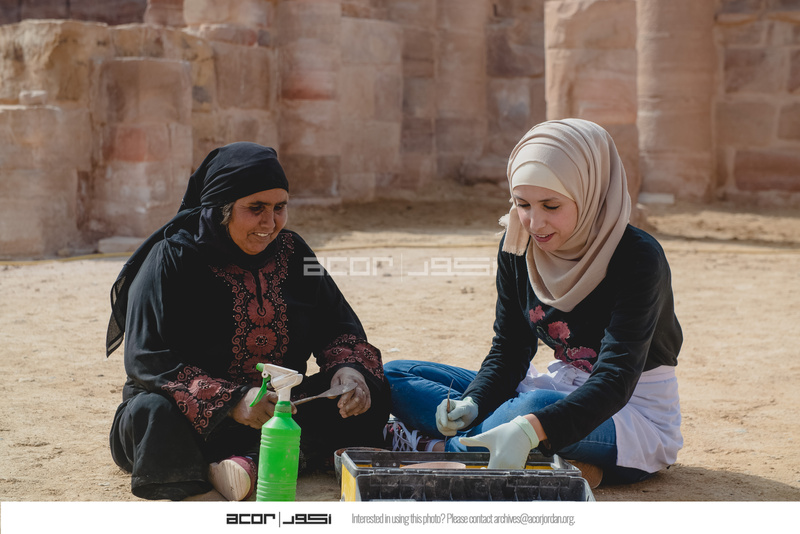 - Jordan. Petra, Temple of the Winged Lions, Wajd Nawafleh and Ageleh Jmeidi with conservation tools