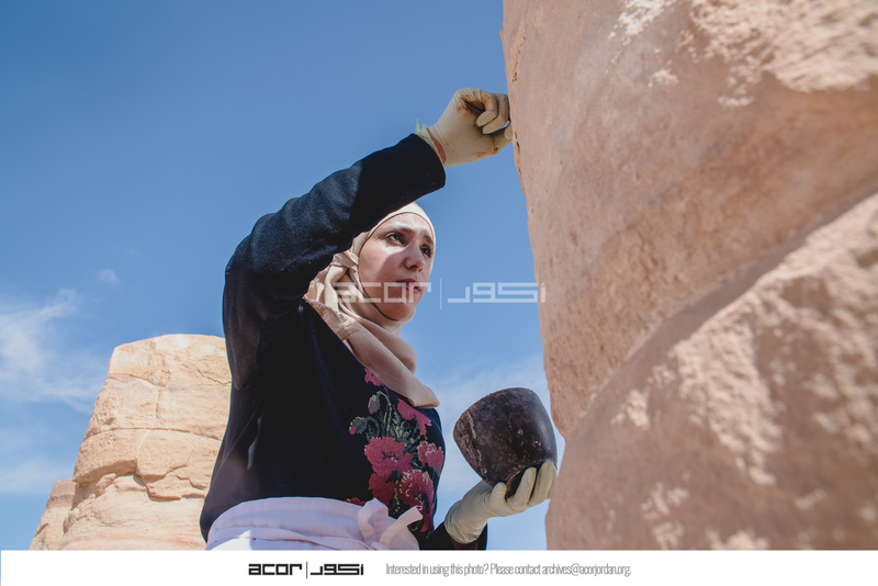 Jordan. Petra, Temple of the Winged Lions, Wajd Nawafleh mortaring