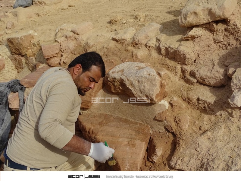 - Jordan. Petra, Temple of the Winged Lions, Khaled Wakhyan cleaning in southwest quadrant during consolidation work
