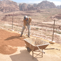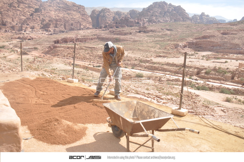 - Jordan. Petra, Temple of the Winged Lions, coarse sand added to path build out in front of cella