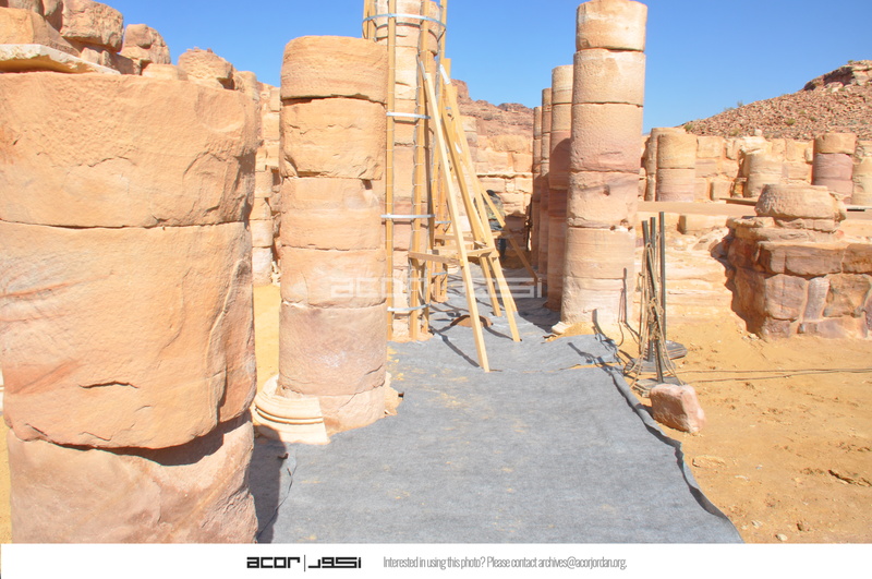 - Jordan. Petra, Temple of the Winged Lions, geotextile layer added to west side of cella