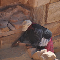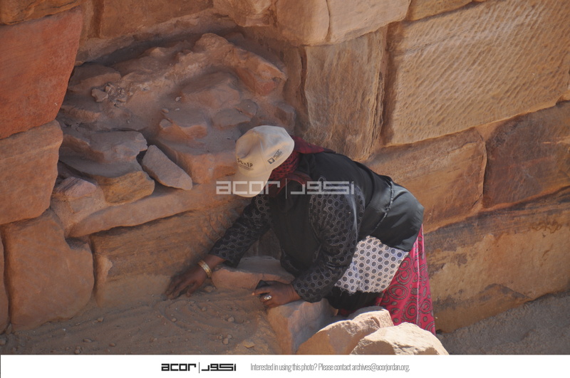 - Jordan. Petra, Temple of the Winged Lions, Khitmeh Aljdelat compacting soil by hand