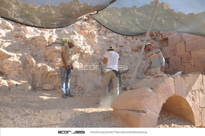 Jordan. Petra, Temple of the Winged Lions, cobble layer for southwest quadrant backfilling / buttress, team members