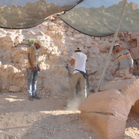 - Jordan. Petra, Temple of the Winged Lions, cobble layer for southwest quadrant backfilling / buttress, team members