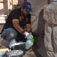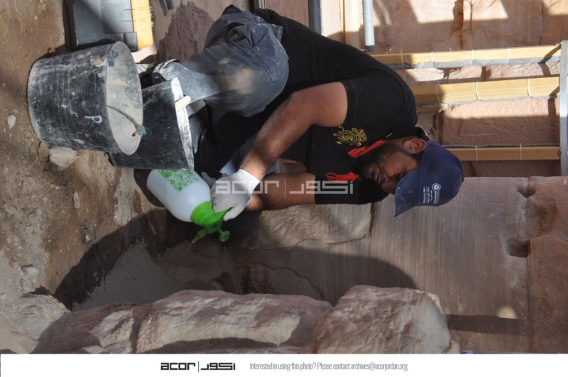 - Jordan. Petra, Temple of the Winged Lions, Khaled Wakhyan working in the temple cella