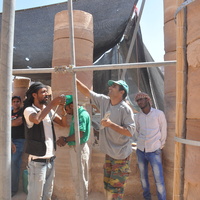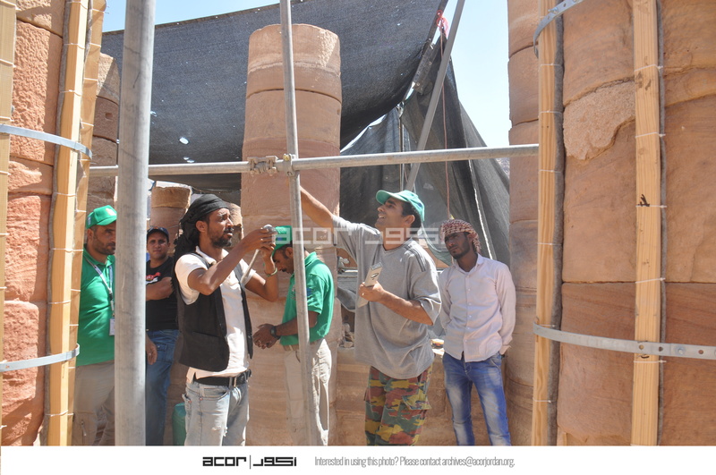 - Jordan. Petra, Temple of the Winged Lions, PDTRA staff installing scaffolding in the temple