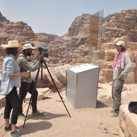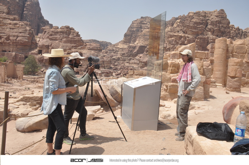 - Jordan. Petra, Temple of the Winged Lions, Glenn Corbett, Mariam Saleh and Yusuf Ahmad during filming of a video for ACOR's 50th anniversary