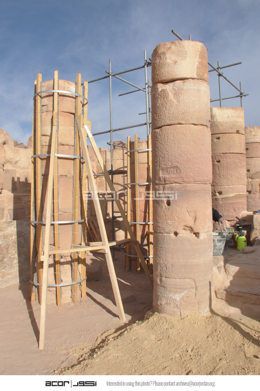 - Jordan. Petra, Temple of the Winged Lions, additional wooden supports added to column 32E in cella