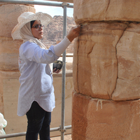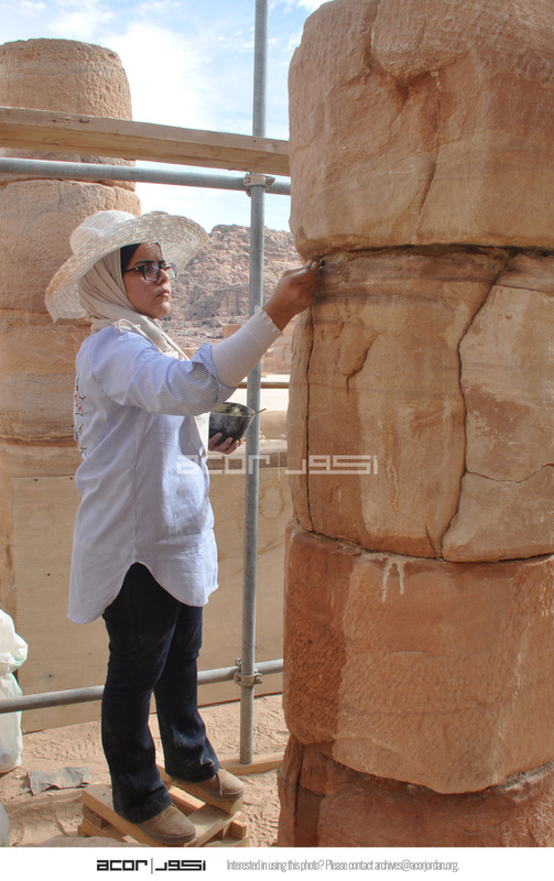 - Jordan. Petra, Temple of the Winged Lions, Halemah al Nawafleh mortaring column 34E