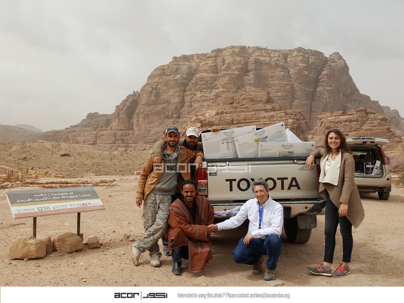 - Jordan. Petra, Temple of the Winged Lions, Bassam Alfaqeer, Ahmad Mowasa, Shaka Alfaqeer, John (Jack) Green, Miriam Saleh, truck full of signs about to be installed