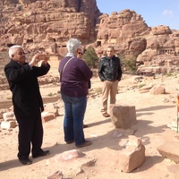 - Jordan. Petra, Temple of the Winged Lions, north of lapidarium, Elena Ronza and Mohammad Shobaki with Ghassan Al Deir of the Dept. of Antiquities