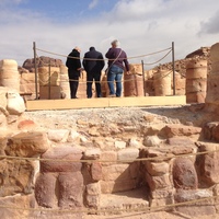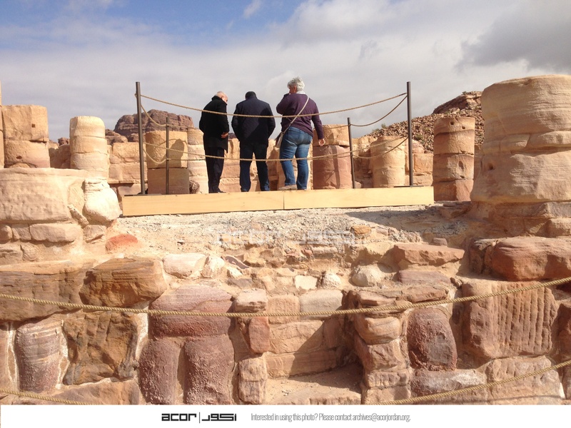 - Jordan. Petra, Temple of the Winged Lions, Director General of the Dept. of Antiquities Dr. Monther Jamhawi with Elena Ronza and Mohammad Shobaki, looking into the entrance to the temple