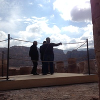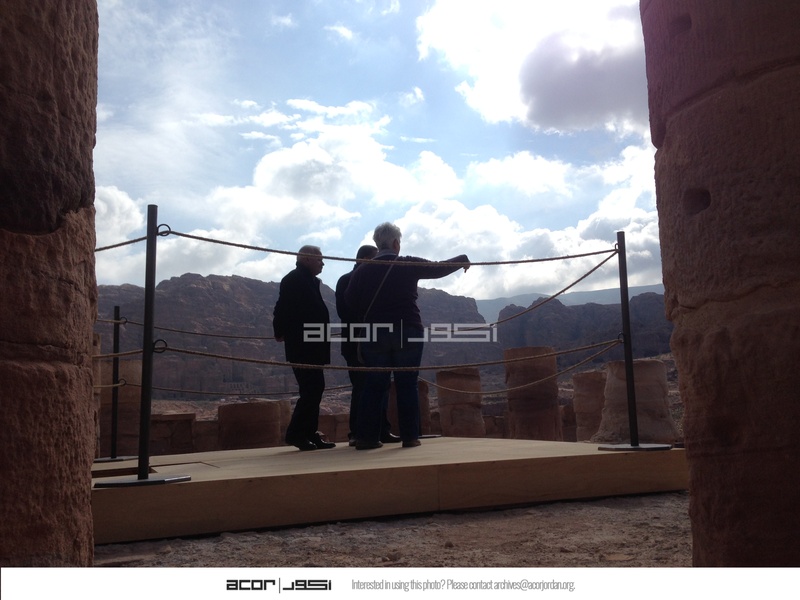 - Jordan. Petra, Temple of the Winged Lions, Director General of the Dept. of Antiquities Dr. Monther Jamhawi with Elena Ronza and Mohammad Shobaki, looking into the entrance to the temple