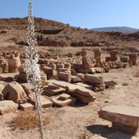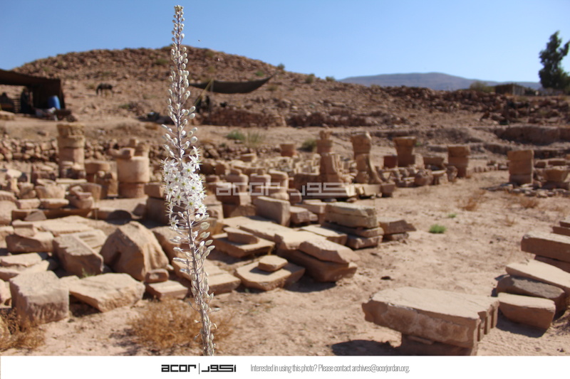 - Jordan. Petra, Temple of the Winged Lions, lapidarium with asphodel flower in foreground