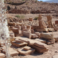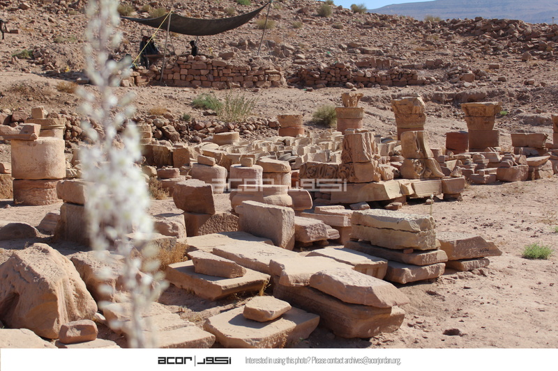 - Jordan. Petra, Temple of the Winged Lions, lapidarium with asphodel flower in foreground