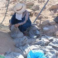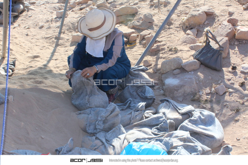 - Jordan. Petra, Temple of the Winged Lions, team member assisting with sandbag filling