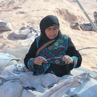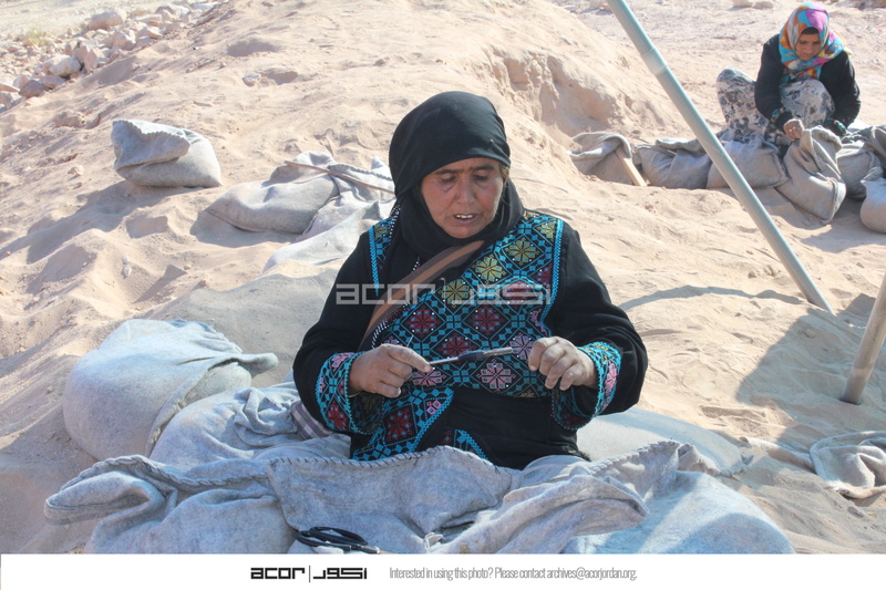 - Jordan. Petra, Temple of the Winged Lions, team member Ageleh Jmeidi making sandbags