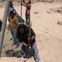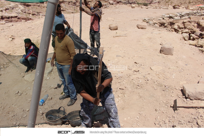- Jordan. Petra, Temple of the Winged Lions, sifting station, team members