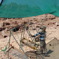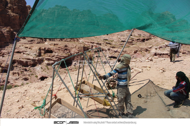 - Jordan. Petra, Temple of the Winged Lions, sifting station, team members