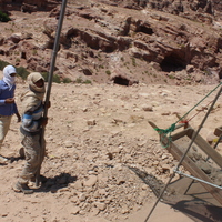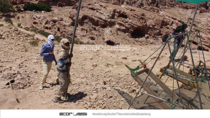 - Jordan. Petra, Temple of the Winged Lions, sifting station, team members