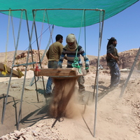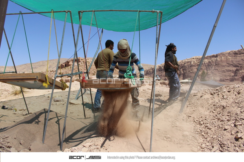 - Jordan. Petra, Temple of the Winged Lions, sifting station, team members