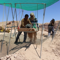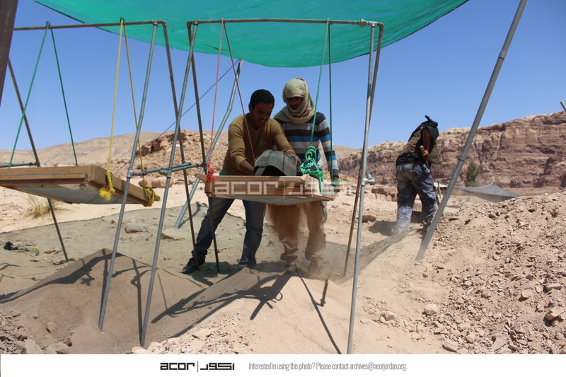 - Jordan. Petra, Temple of the Winged Lions, sifting station, team members
