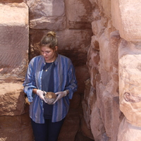 - Jordan. Petra, Temple of the Winged Lions, team members mortaring wall in southwest quadrant