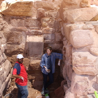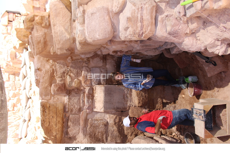 - Jordan. Petra, Temple of the Winged Lions, team members mortaring wall in southwest quadrant