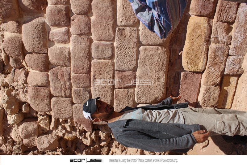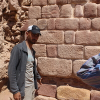 - Jordan. Petra, Temple of the Winged Lions, Ahmad Mowasa standing next to the remains of the retaining wall in the southwest quadrant