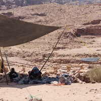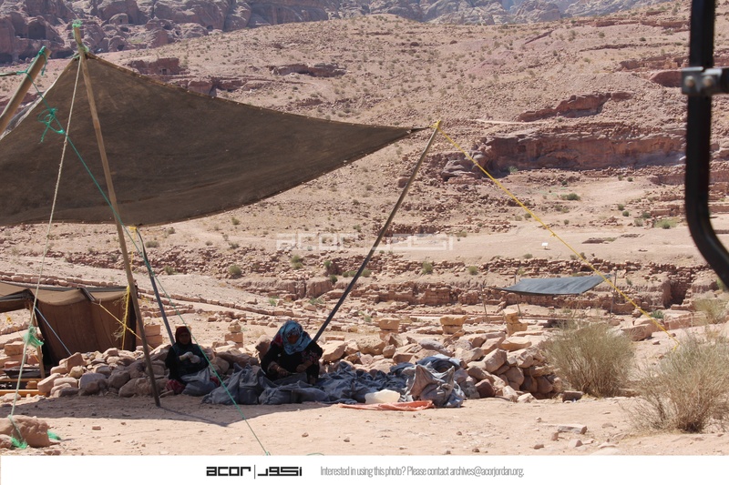 - Jordan. Petra, Temple of the Winged Lions, local Bedouin women making sandbags