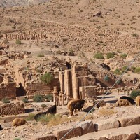 - Jordan. Petra, Temple of the Winged Lions, sheep grazing on site