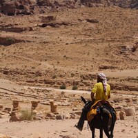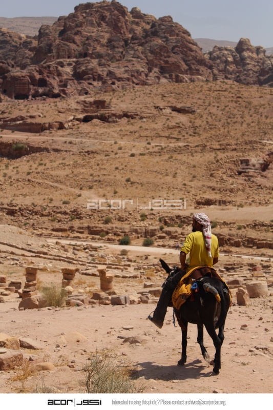 - Jordan. Petra, Temple of the Winged Lions, local community member on donkey