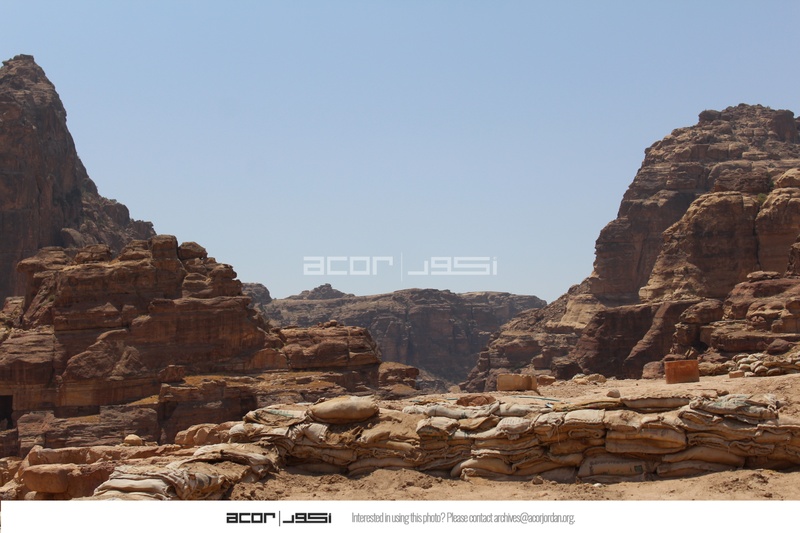 - Jordan. Petra, Temple of the Winged Lions, sandbags in the northern area of site