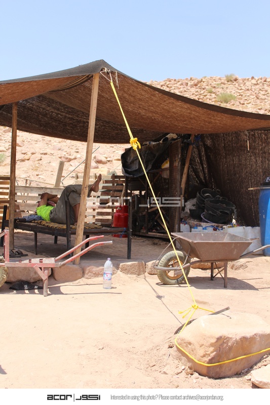 Jordan. Petra, Temple of the Winged Lions, team member inside tent