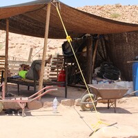 - Jordan. Petra, Temple of the Winged Lions, team member inside tent