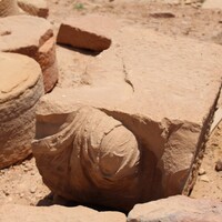 - Jordan. Petra, Temple of the Winged Lions, piece of sculpture from pronaos, shoulder from a male bust