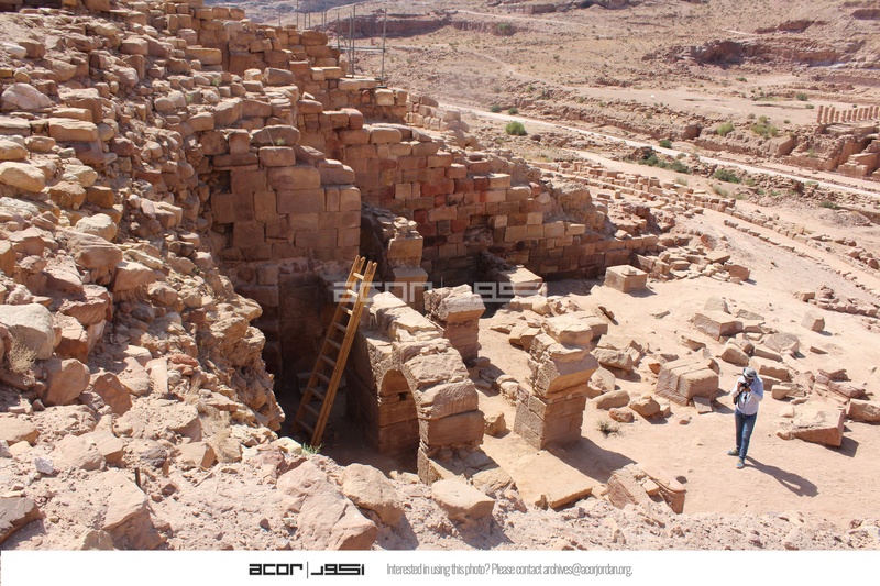Jordan. Petra, Temple of the Winged Lions, southwest quadrant facing southeast, team member