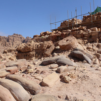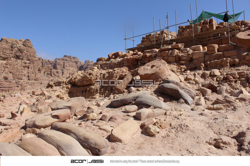 - Jordan. Petra, Temple of the Winged Lions, south side of temple facing northwest, fallen columns in foreground