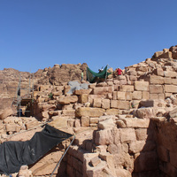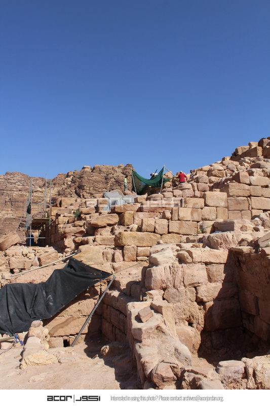 - Jordan. Petra, Temple of the Winged Lions, south side of temple (pronaos) facing west