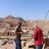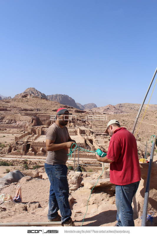 - Jordan. Petra, Temple of the Winged Lions, Shaker Alfaqeer assists fellow TWL team member with rope for scaffolding